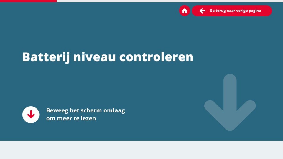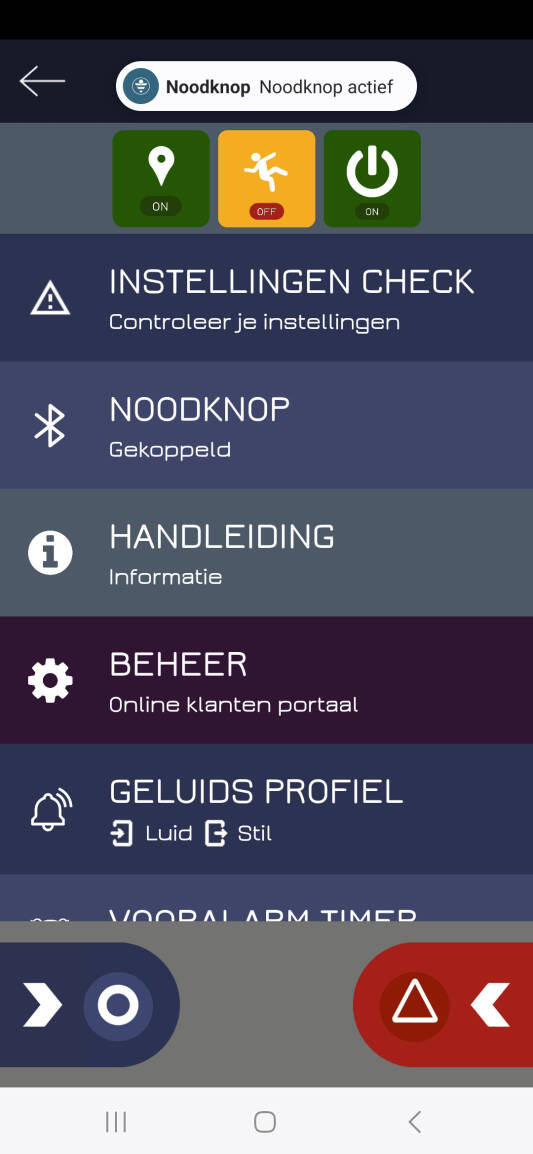 Bij de test wordt ook elke keer de actuele batterijspanning van de noodknop doorgemeten. Als de batterijspanning te laag is krijg je bij het testen hiervan een melding op de gekoppelde telefoon/tablet van de alarmgever zodat je tijdig de batterij kunt vervangen. Deze melding ontvang je alleen op de telefoon van de alarmgever en nooit op de telefoons van de contactpersonen.
