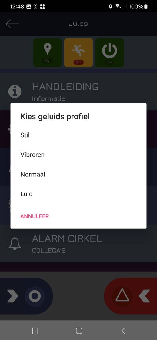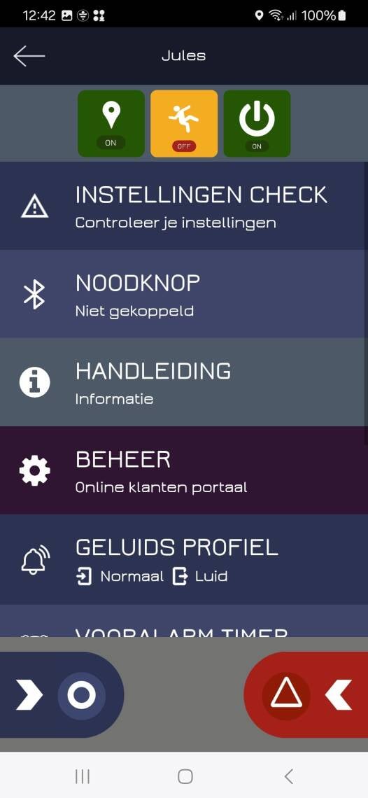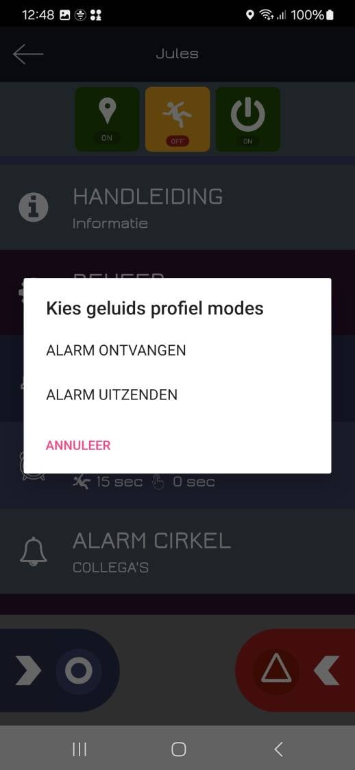 Zodra de alarmgever op de noodknop drukt om het alarm te activeren worden er 8 luide pieptonen afgespeeld op de telefoon van de alarmgever. Zolang het alarm actief is (en nog niet is afgezet) worden er elke twee minuten 8 luide pieptonen afgespeeld.