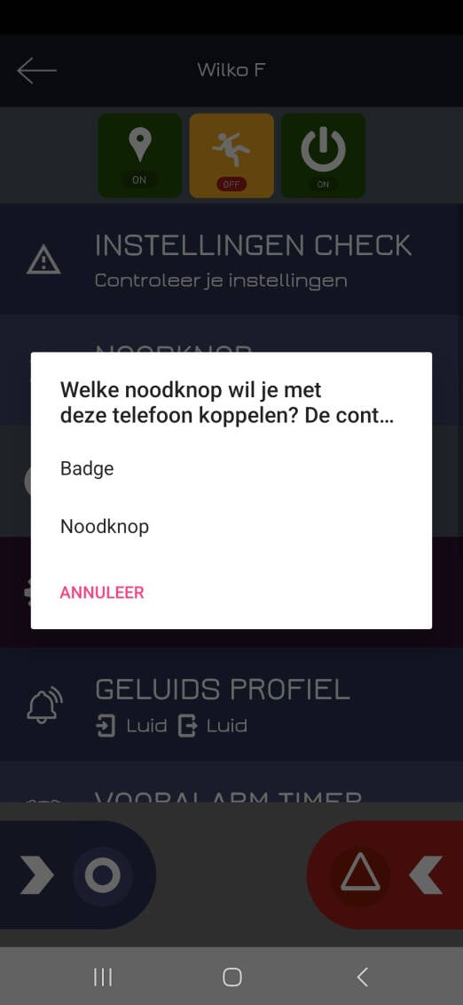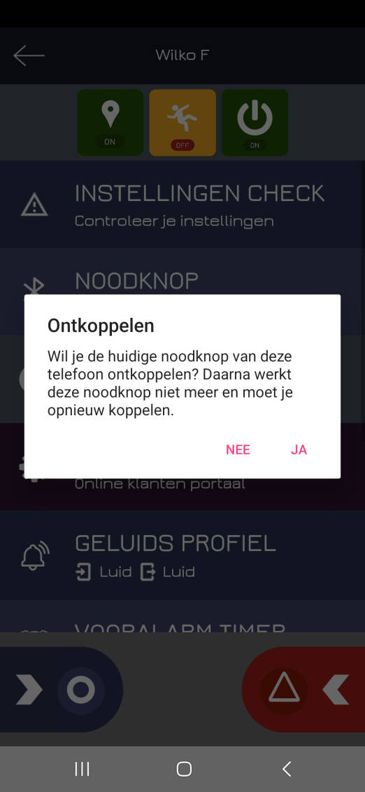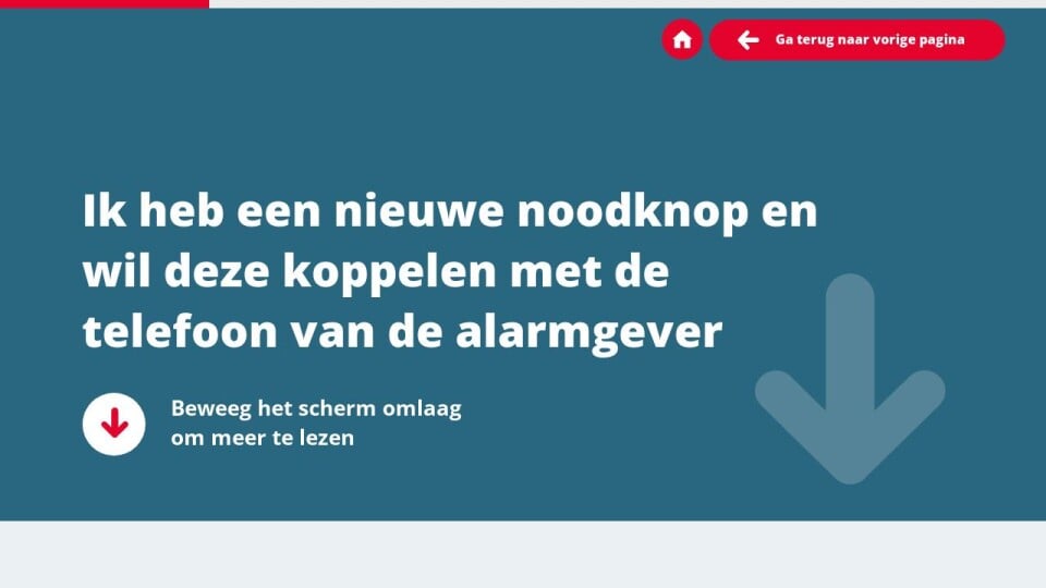 Als de alarmgever de ‘oude’ noodknop heeft verloren of vervangen moet de nieuwe alarmknop of polsband gekoppeld worden met de telefoon van de alarmgever (anders werkt de noodknop niet).