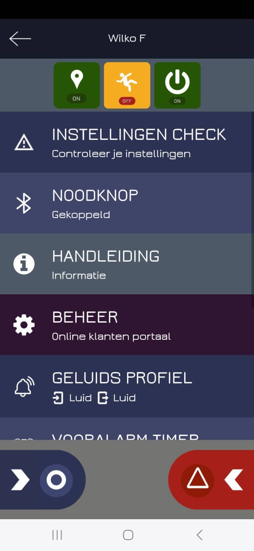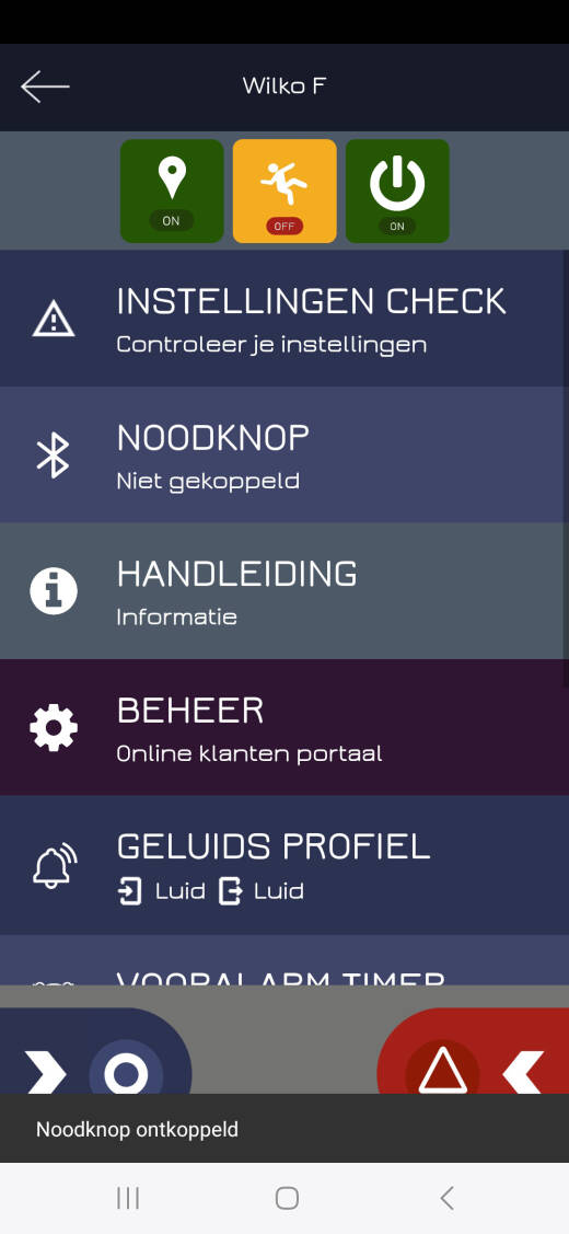 Zorg dat Bluetooth en GPS-locatie (locatiebepaling) altijd aan staan op de telefoon van de alarmgever!